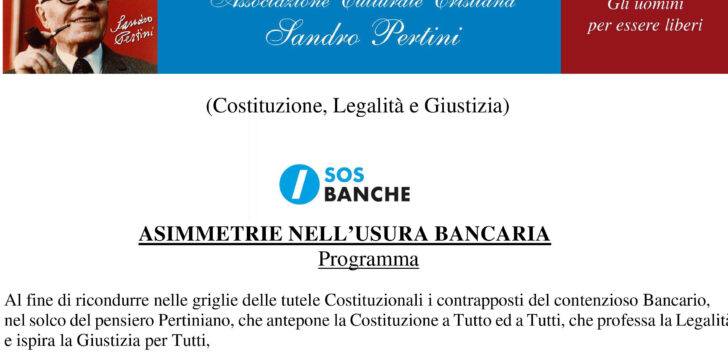 ASIMMETRIA NELL’USURA BANCARIA – UN CONVEGNO APERTO A TUTTI 28 Maggio 2021, dalle ore 9,30 alle 18,00 in modalità…
